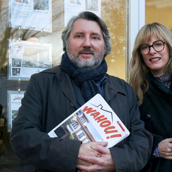 Catherine and Oracio are real estate advisors, and are visiting two properties in quick succession: a large bourgeois house "which can have a swimming pool and RER view", and a small modern apartment in the heart of Bougival's golden triangle.