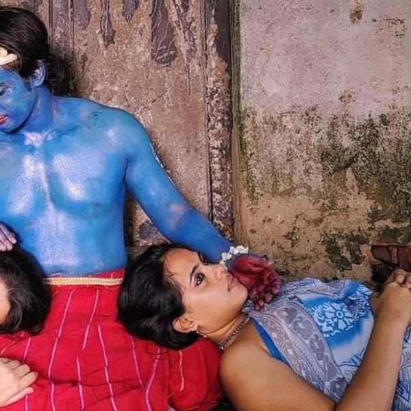 The mythical cowherdess Radha and poet-saint Meera vie for the attention of their blue-skinned paramour-god Krishna. Singled out by the poet Jayadeva as Lord Krishna’s favourite inamorata in his twelfth century epic love poem Gita Govinda, Radha is often characterised by feelings of jealousy and heartbreak at Krishna’s eternal fickleness. Meera, on the other hand, was a sixteenth century poet-saint whose relationship to Krishna was one of constant devotion and unfulfilled yearning, sentiments immortalised in her poems that continue to be sung today as musical compositions.