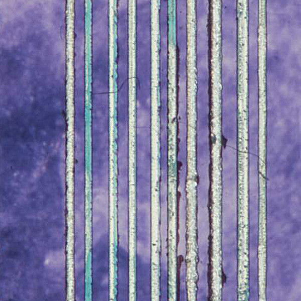 Streaming, scratched lines continuously appear two at a time over images of flowing water.