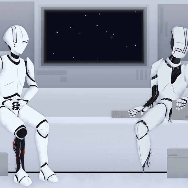 Aboard the spacecraft LUMINA, robots XA and V4 sit in the maintenance bay, awaiting repair from the human Technician. The two form an unlikely friendship as one is fixed, and the other is slowly taken apart.