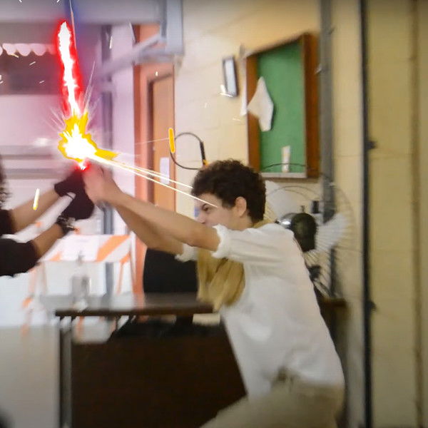 Two force users battle in a university landscape. Inspired by a Mel Brooks joke in "Spaceballs" (1987).