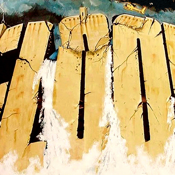 Two helicopter pilots rush aid to a small town devastated by a flood following the collapse of an aging dam.