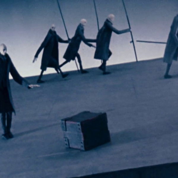 The setting is on a floating platform where a group of evenly and carefully placed men live. Each man is aware that the platform is not stable and in order not to fall to their deaths, they maintain a careful balance of weight to prevent the platform from tipping too far and cause them all to fall.