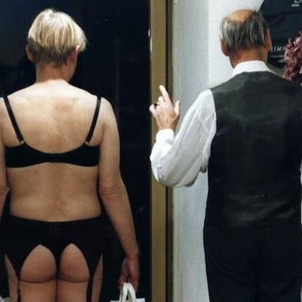 A perfectly dressed salesperson for upscale women's underwear is waiting for his next customer. A rather strange gentleman comes in and starts browsing the lingerie displays. He slides the thongs through his dirty fingers, satisfaction evident on his face. The salesman is suspicious but tries to remain politely in the background. What does the man want? Women's thongs? Hardly likely. The seller takes action...